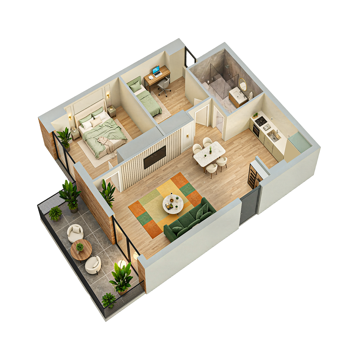 სრული ფართი 60.7 კვ.მ